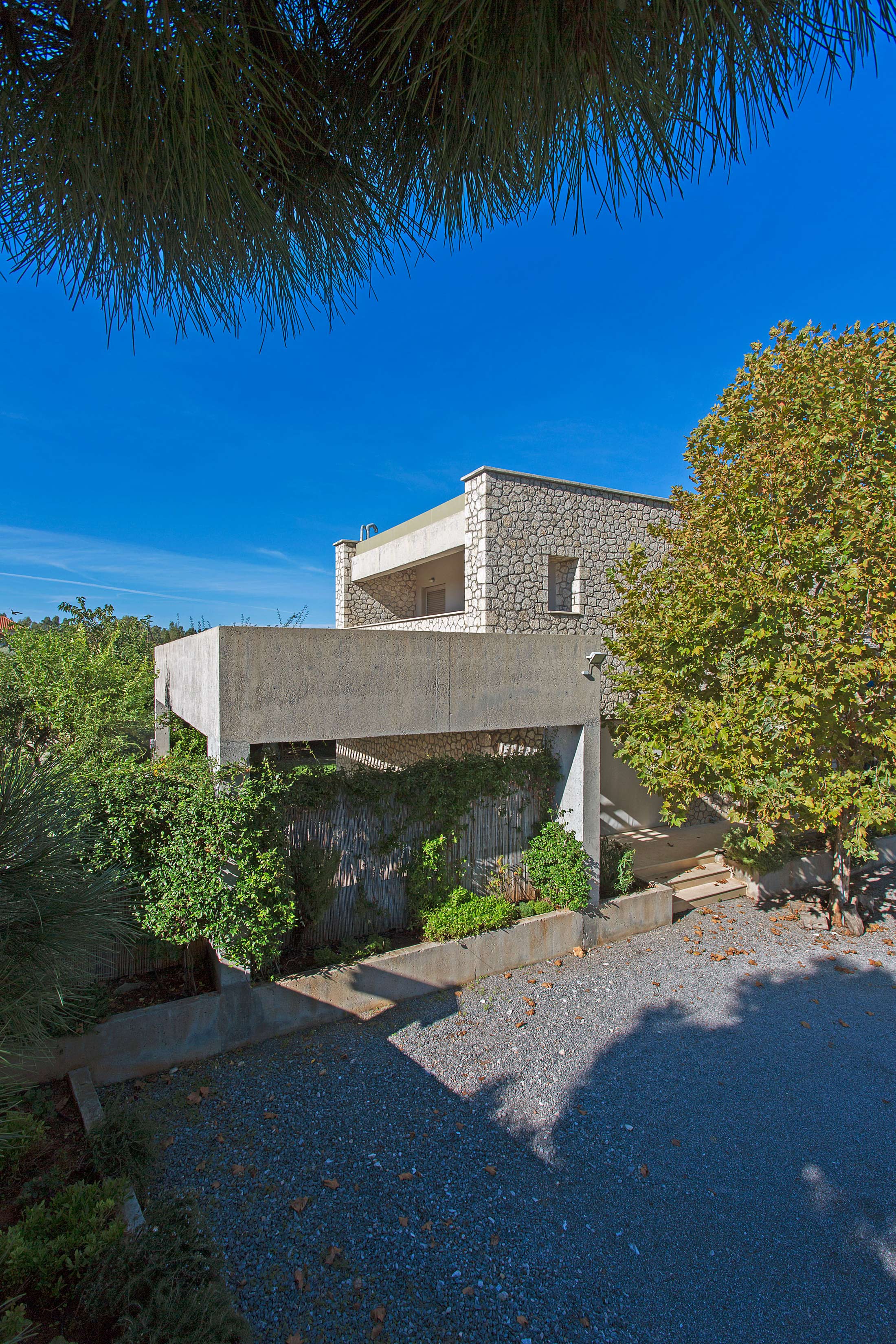 The facades of the building have all been crafted with the same local stone which appears in various sections of the indoor areas, creating a unity between the exterior and interior spaces. Certain components including the pergolas and parapets have been crafted using uncoated concrete to make them stand out grandly from the main structure.